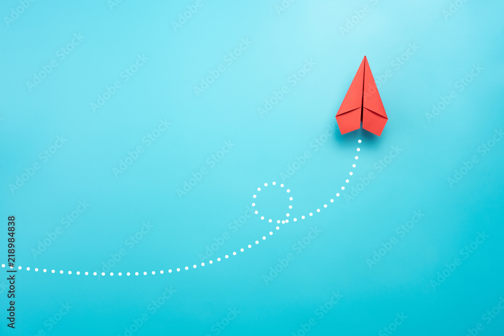 Red paper plane on blue background #218984838