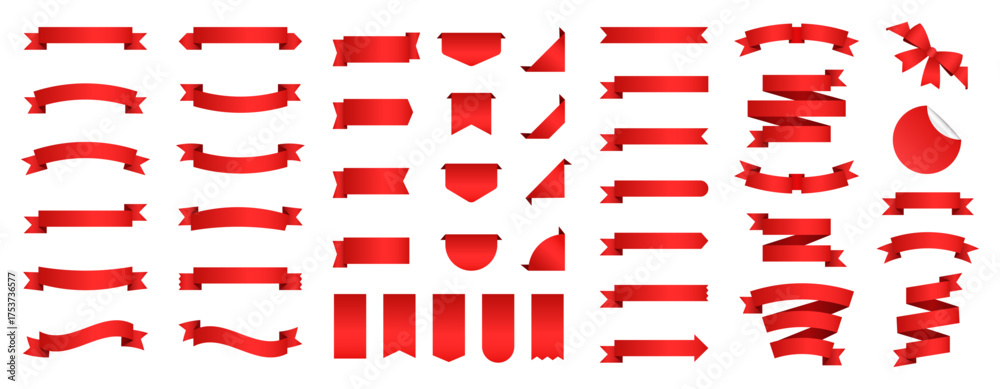 Red ribbon banners set. Sale, offer, discount, price sticker decorative labels and tags collection, Vector illustration #1753736577