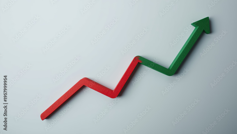 Red to green zigzag arrow representing recovery and growth optimism #1957999954