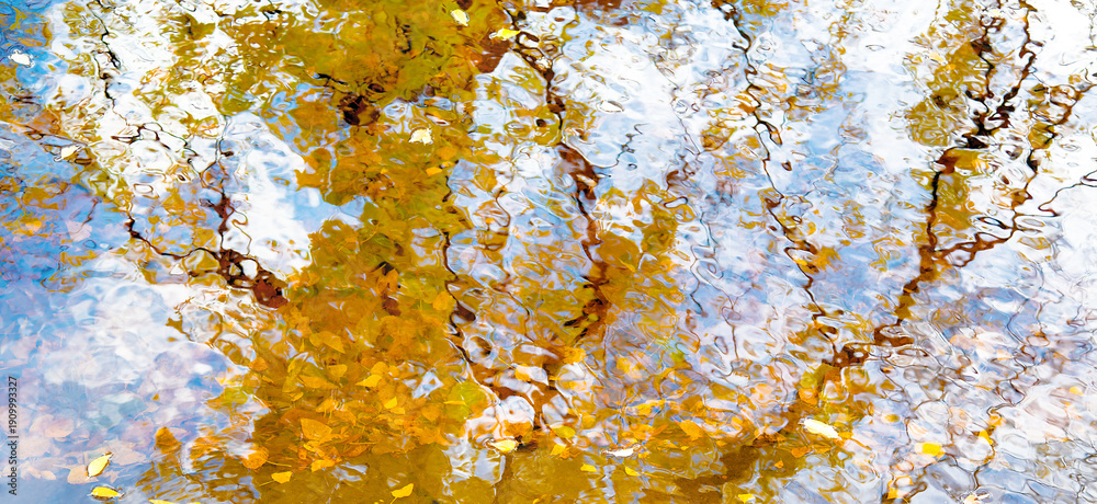 Reflection of yellow foliage in water #1909993327