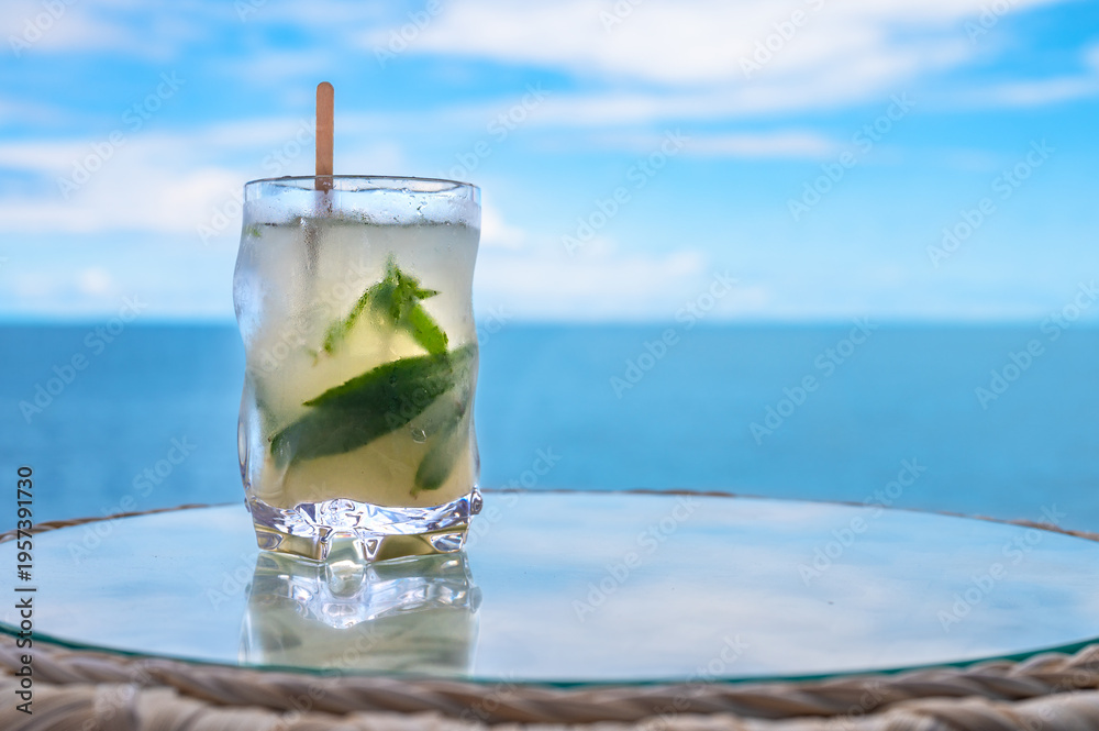 Refreshing Cocktail with Mint Leaves and Lime Served by the Seaside. Summer Drink and Relaxation Concept. #1957391730