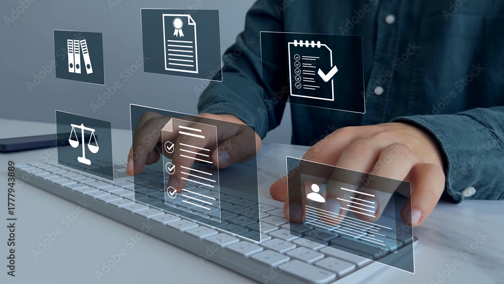 Regulations, law, standards and requirements.Law regulation and compliance rules on virtual screen.Quality assurance,guarantee, standards, certification and standardization. #1777943889