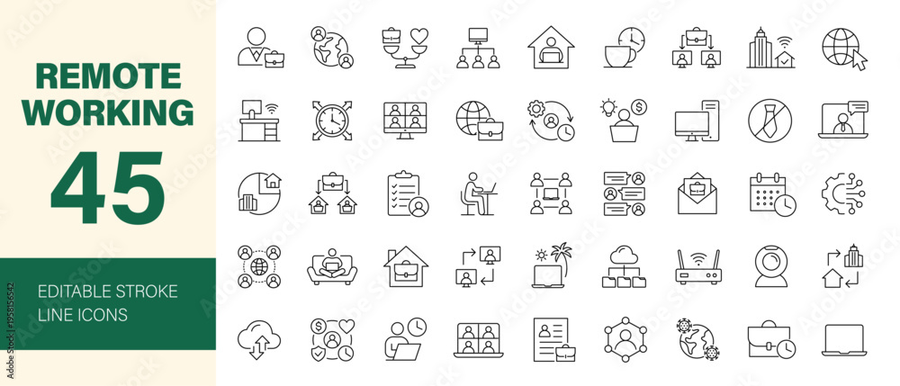 Remote working icon set. Editable line icons. Vector illustration. #1958156542