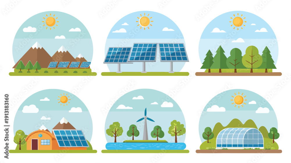 Renewable Energy and Solar Power Landscape Collection – Sustainable Future Concept #1913183160