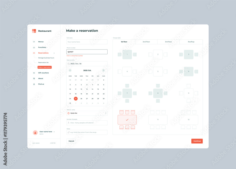Restaurant booking UI design template #1179395774