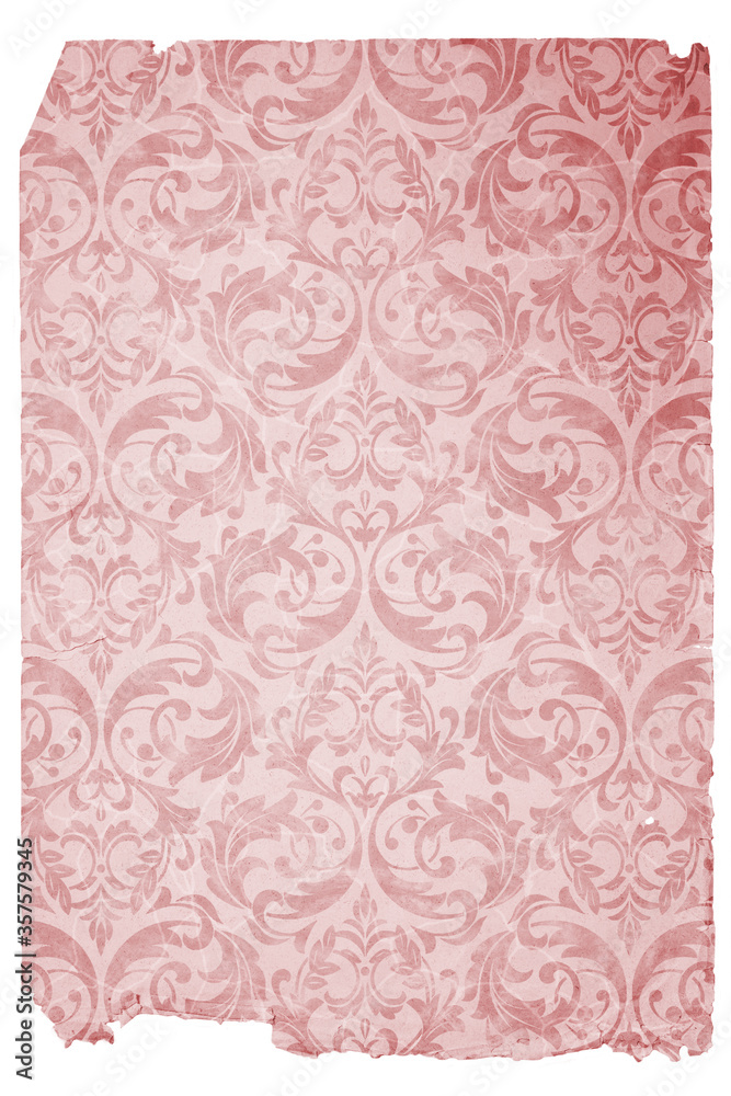 retro floral damask paper, vintage design, old grunge paper texture, vertical shot #357579345