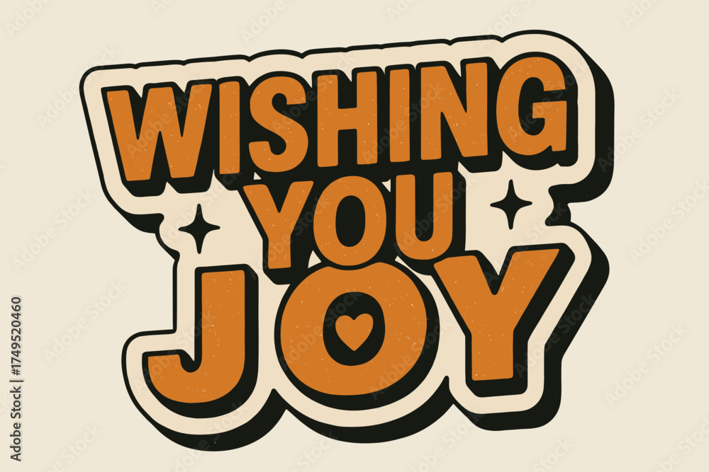 Retro Joyful Stickers. Wishing You Joy. retro sticker block lettering, bold cut-out outline, slight #1749520460