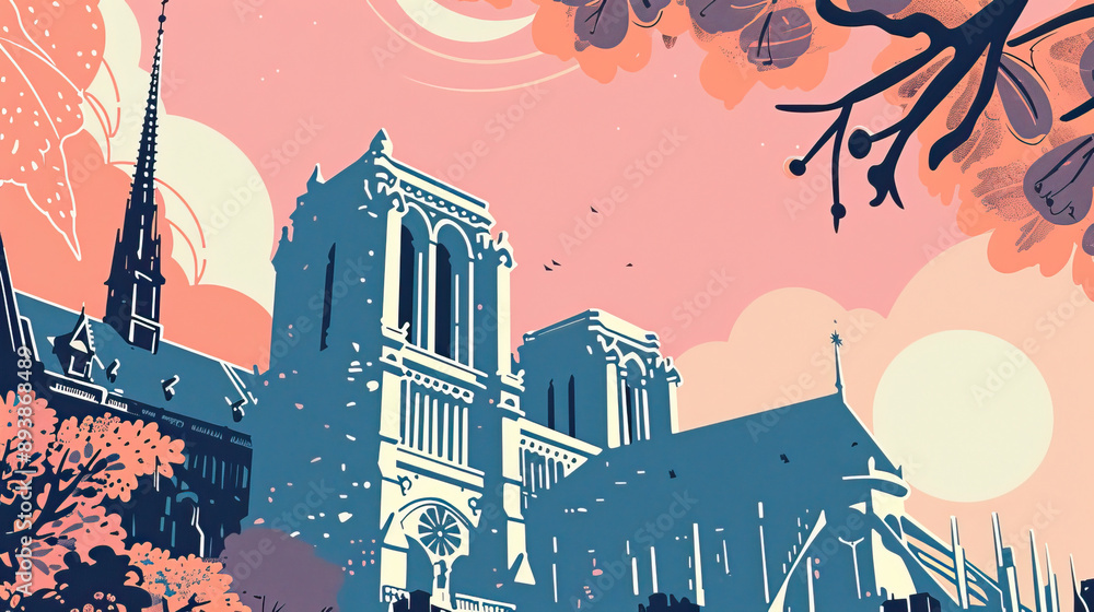 Risograph artistic riso print travel poster, card, wallpaper or banner illustration, modern, isolated, clear, simple of Saint-Denis, France. Artistic, screen printing, stencil #893868489