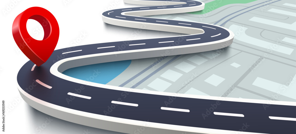 Road map with 3d location pin icon symbol or gps travel route navigation markers and transportation place pointer. #1692531149