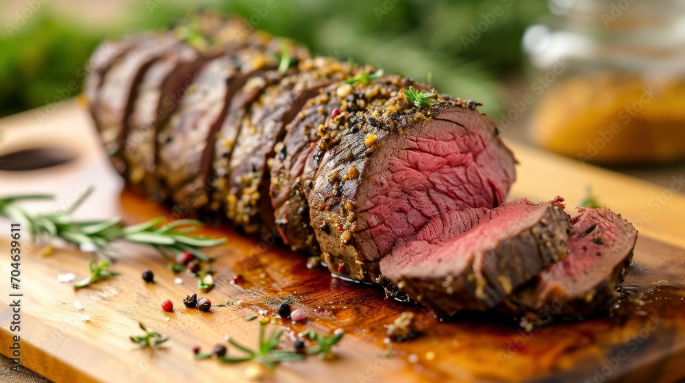 Roasted beef tenderloin meat #704639611