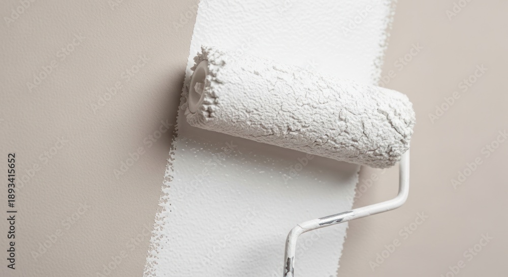 Rolling paint on a wall during a home renovation project in a living room #1893415652