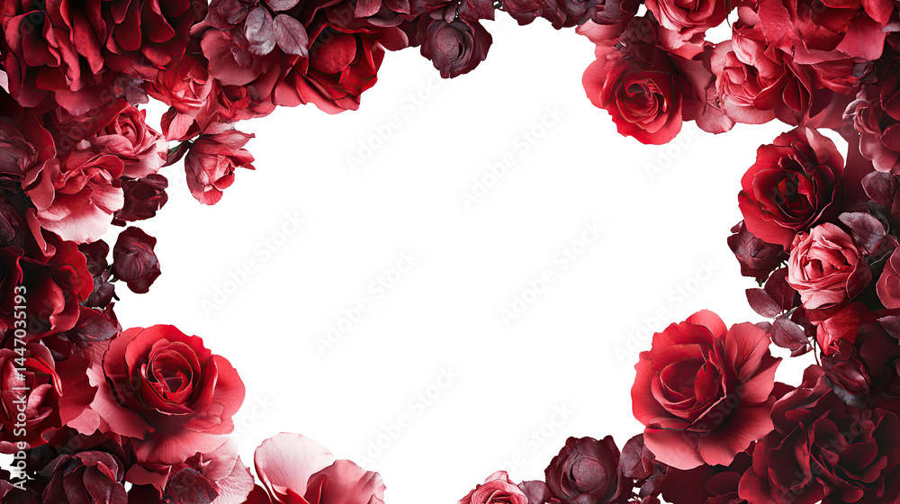 Romantic frame with red rose petals creates a beautiful frame for a Valentine's Day card #1447035193