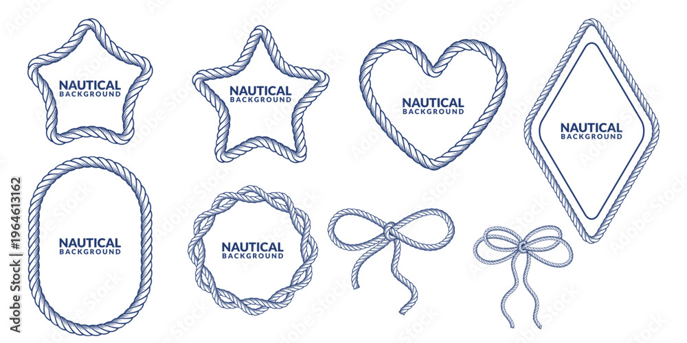 Rope frames, bows vector set. Nautical marine design for banner, poster, print, card, label, beach party invitation #1964613162