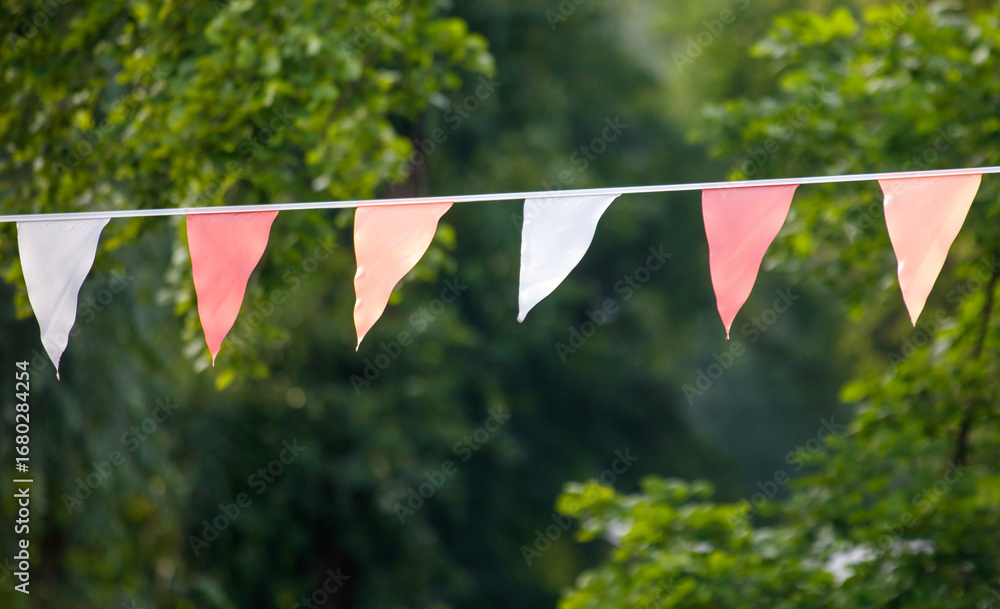 Row of flags hanging from a wire #1680284254