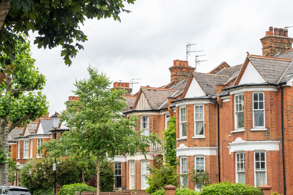 Row of typical upmarket British residential terrace houses #912635233