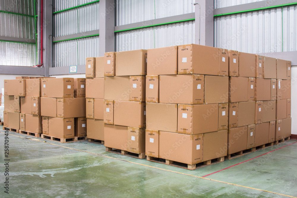 Rows of material boxes or product boxes in warehouse area. #258709414