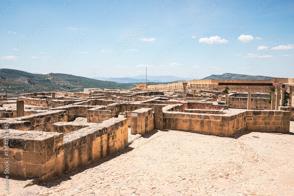 ruins of the Military Quarter inside the La Mota Fortress in Alcalá la Real, comarca of Sierra Sur de Jaén, province of Jaén, Andalusia, Spain #1784003045