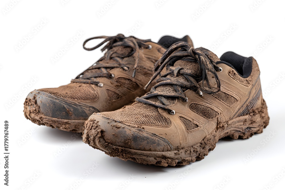 Running shoes covered in mud showcasing rugged design and outdoor adventure spirit #1779767489