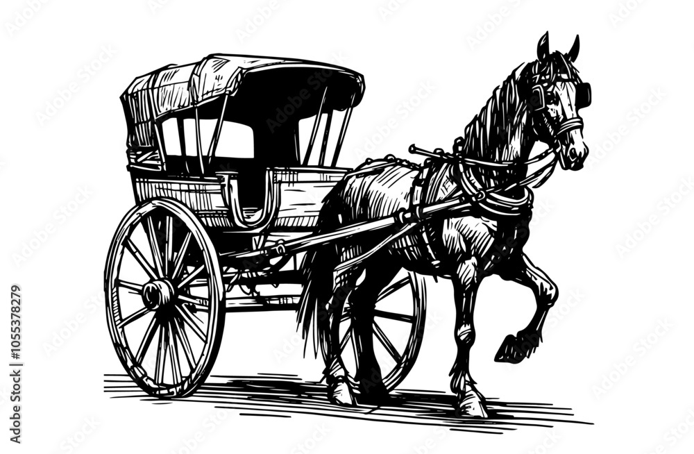 Rustic Horse Buggy in Detailed Line Art #1055378279