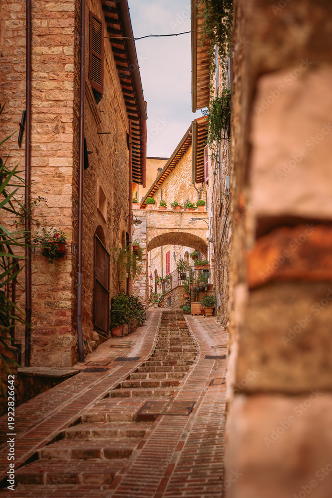 Rustic stone passage with plants in Umbrian historic center #1922826642