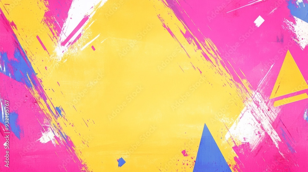 80s and 90s style abstract art with bright geometric patterns and central empty space #932163767