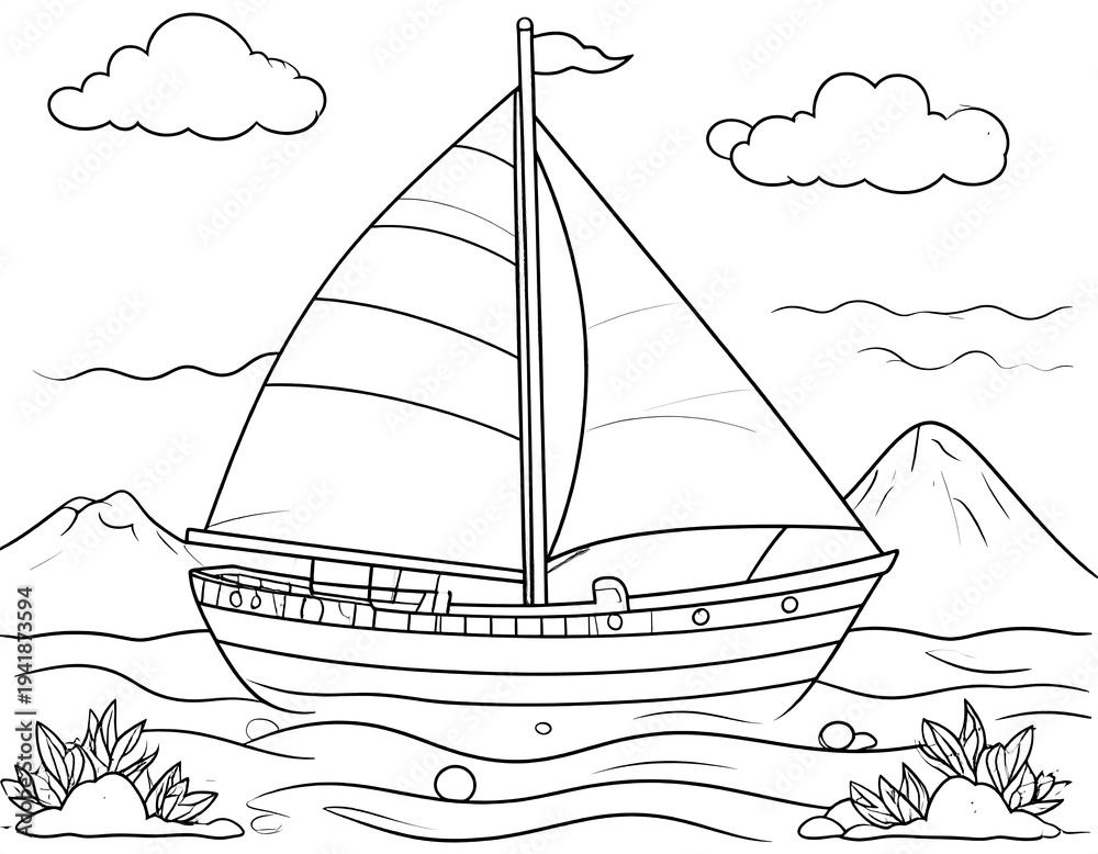 Sailboat on the Water with Mountains and Clouds in the Background. #1941873594