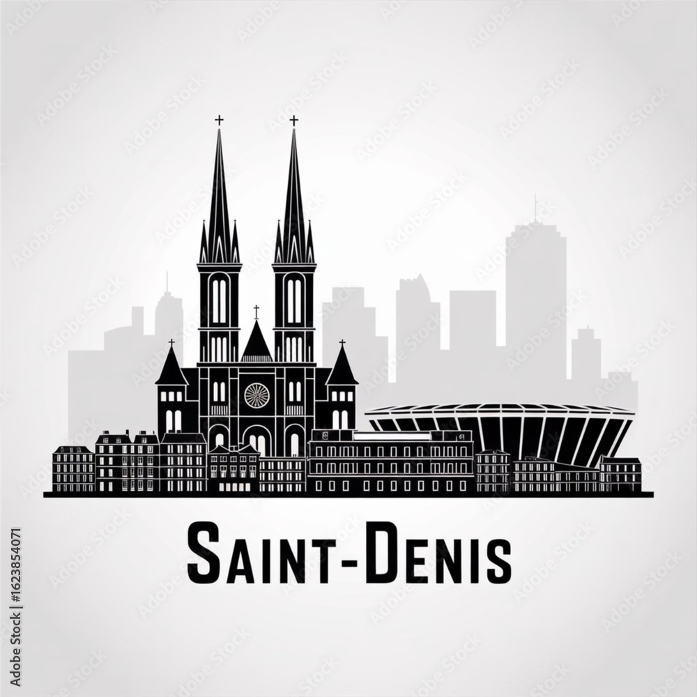 Saint-Denis Skyline Silhouette - Historic French Suburb Vector Illustration #1623854071