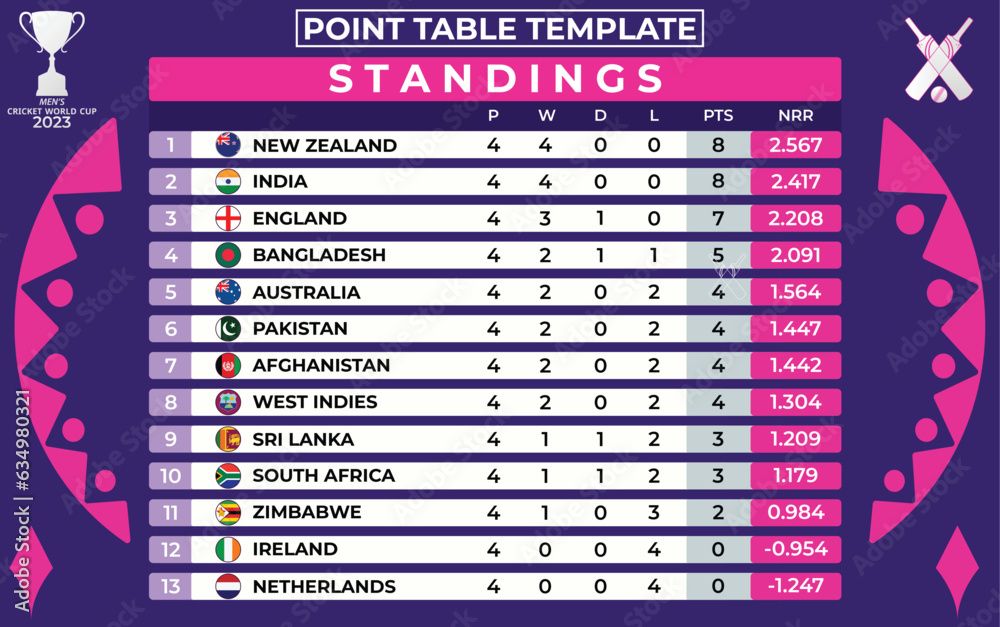 Sample Point Table Template for World Cricket Championship 2023 Participating Countries #634980321
