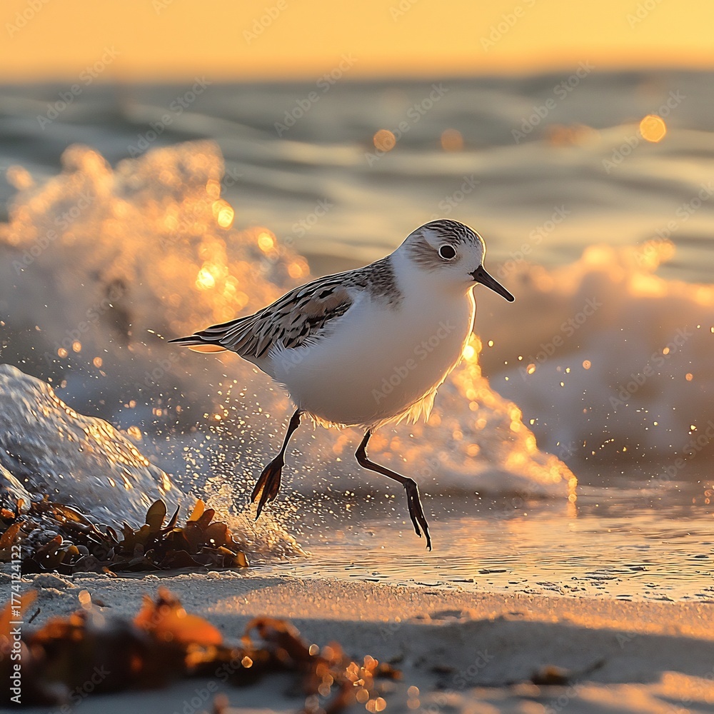 Sandpiper Bird Running Along Sandy Shoreline Near Water Edge Capturing Dynamic Flight Moments With Detailed Feathers and Morning Light In Beach Habitat #1774124122