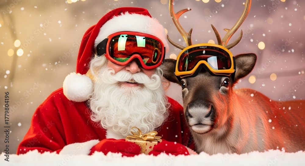 Άγιος Βασίλης και Τάρανδος: Ένας χαρούμενος Άγιος Βασίλης, με εορταστική ενδυμασία και ένα γνήσιο χαμόγελο, στέκεται ώμο με ώμο με έναν μεγαλοπρεπή τάρανδο. #1779804196
