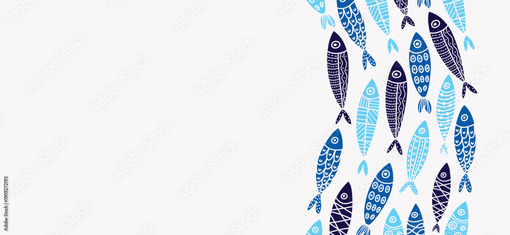 Sardines. Vector sea poster. Undersea. Wave. #1909272193