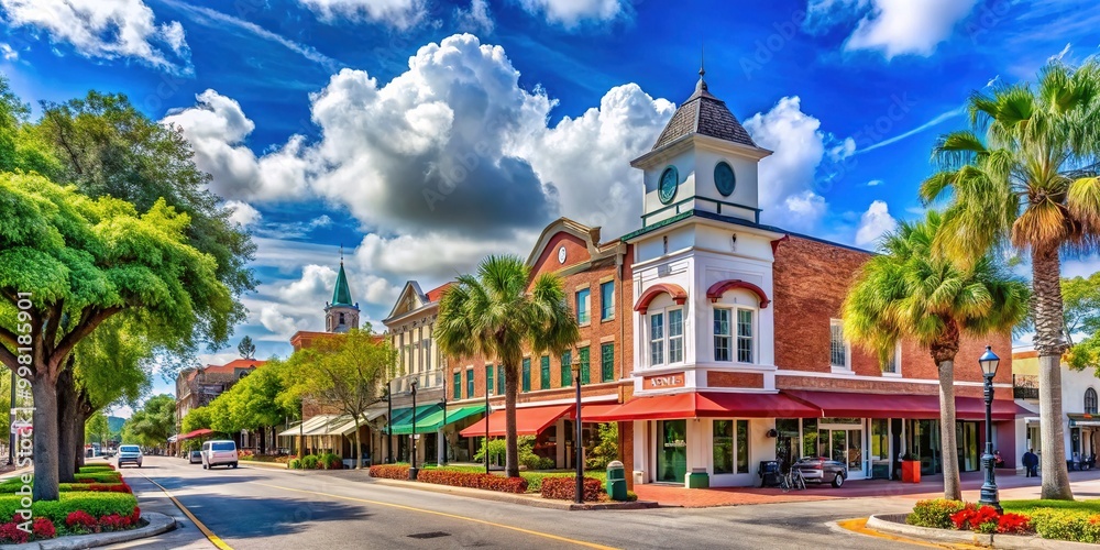 Scenic Historic Downtown Ocala with Charming Architecture and Lush Greenery on a Sunny Day #998185901