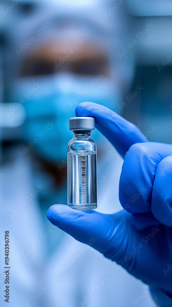 Scientist in protective laboratory equipment holding test tube representing medical research and biotechnology. #1940396798