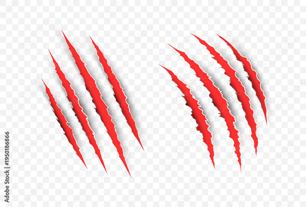 Scratch claw mark tiger bear red paw icon. Animal lion slash claw vector wild monster shape design. #1950186866