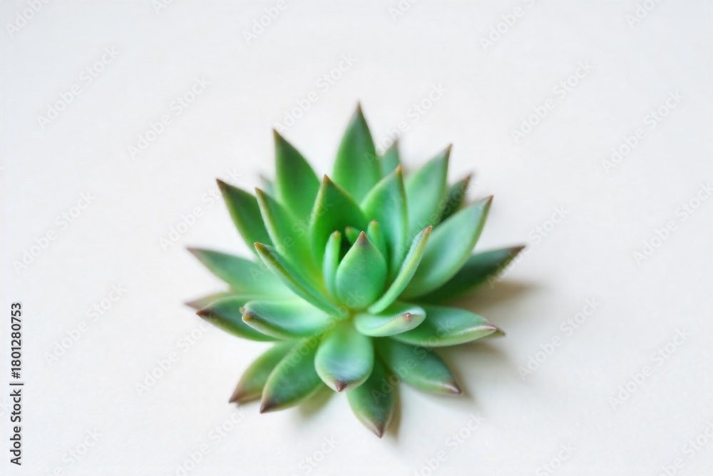 Sculptural plant form with slender, elegant lines, emphasizing natural slim beauty. Macro photography of a single, perfectly formed Echeveria succulent with slender, tightly packed leaves. The plant #1801280753