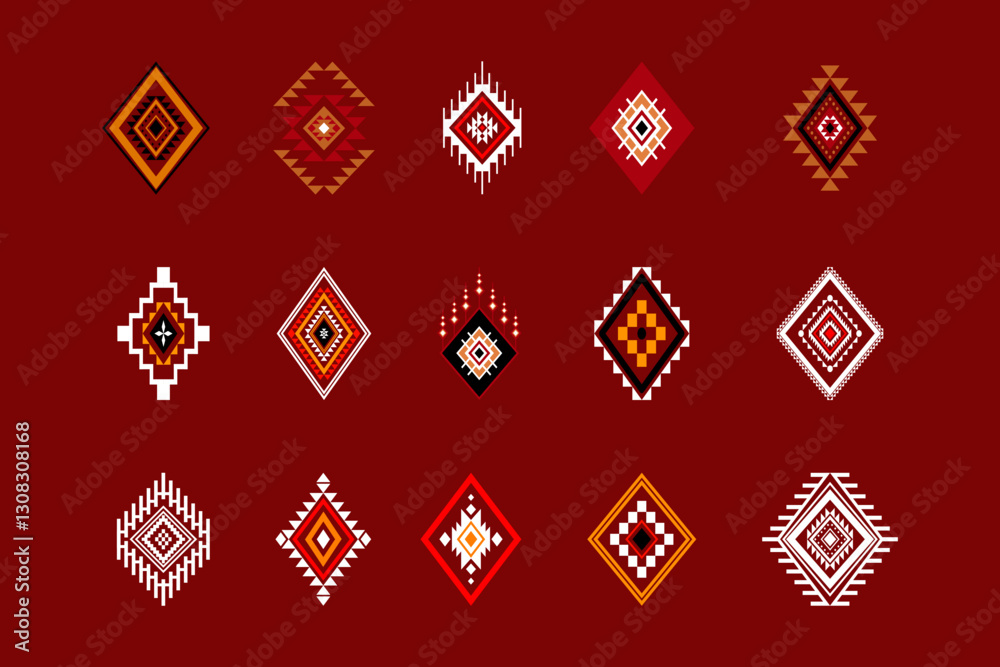 Seamless ethnic traditional combined with geometric shape,folk,ikat,embroidery style and design for fabric design,carpet,printings,clothing,wrapping. #1308308168
