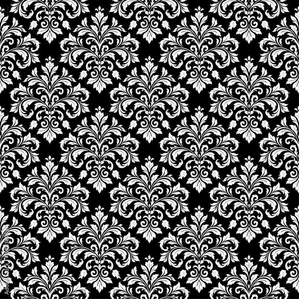 Seamless ornamental damask pattern tile white on black #1973389537