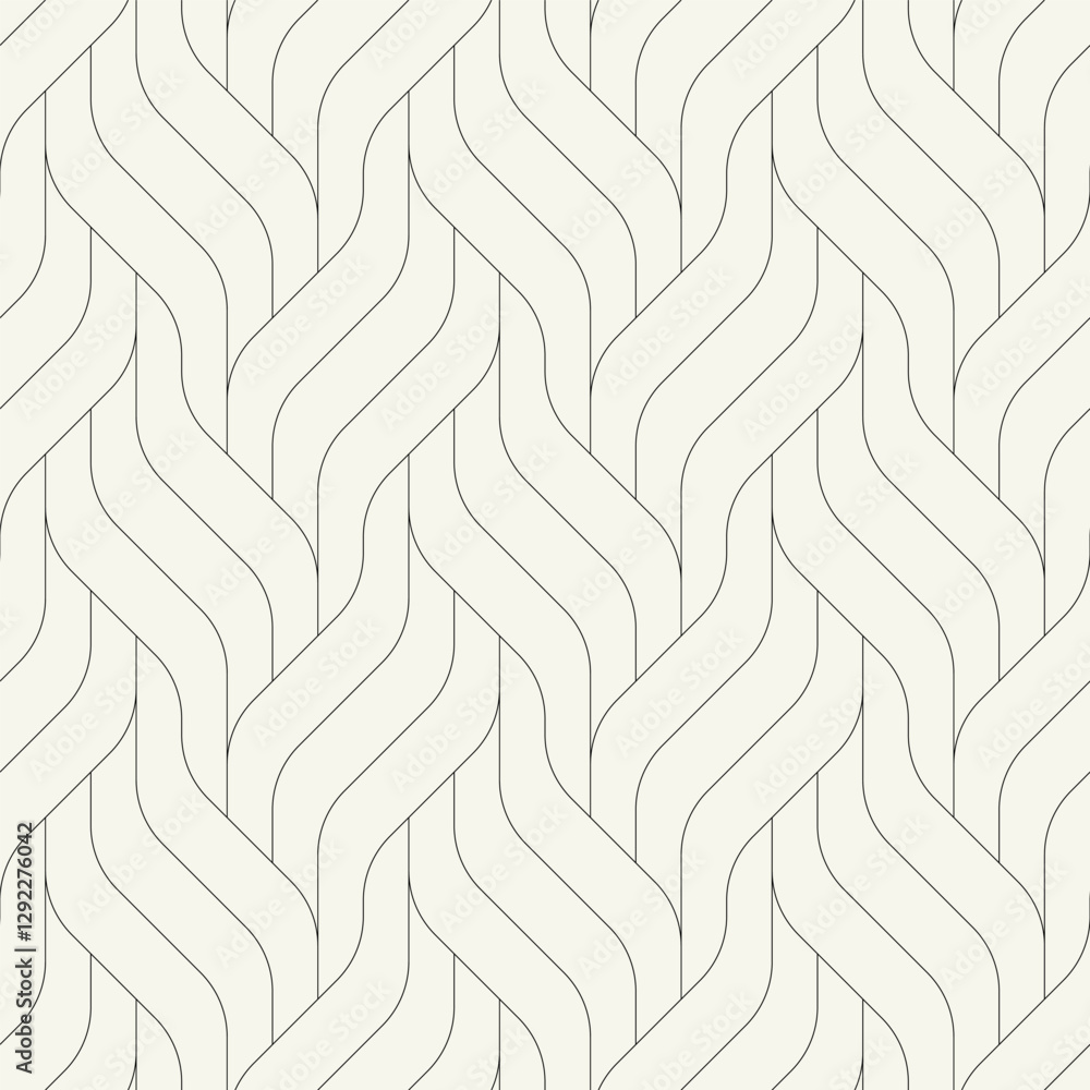 Seamless pattern with geometric waves. Endless stylish texture. Ripple bold monochrome background. Linear weaved grid. Thin interlaced swatch. #1292276042
