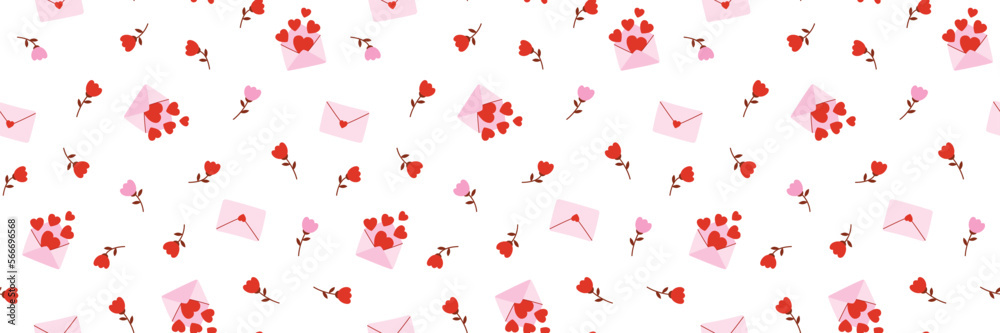 Seamless pattern with love letters and flowers. Vector design #566696568