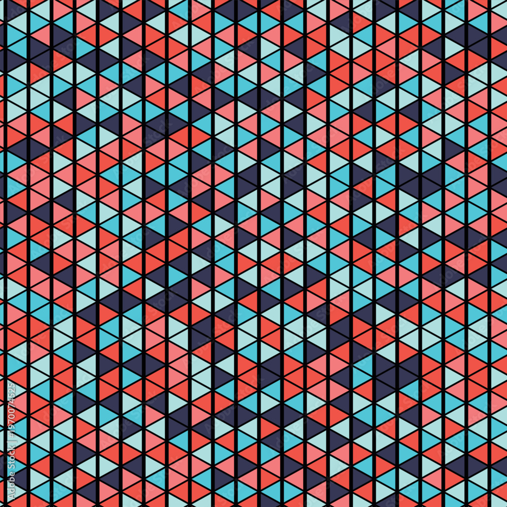 Seamless pattern with triangle decoranive art print. Polygonal rainbow mosaic background. Abstract vector illustration. Triangular graphic Simple pattern geometric design for fabric, wallpaper. #1970074525