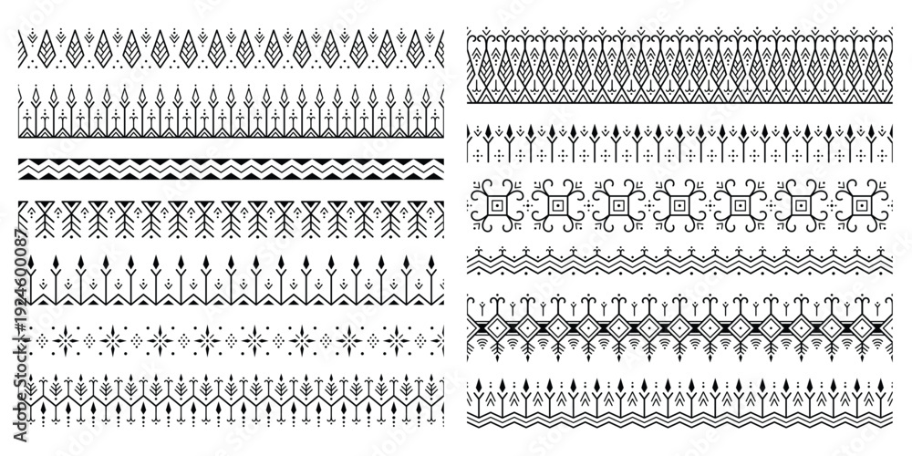Seamless tribal geometric horizontal ornament tattoo pattern set collection #1924600087