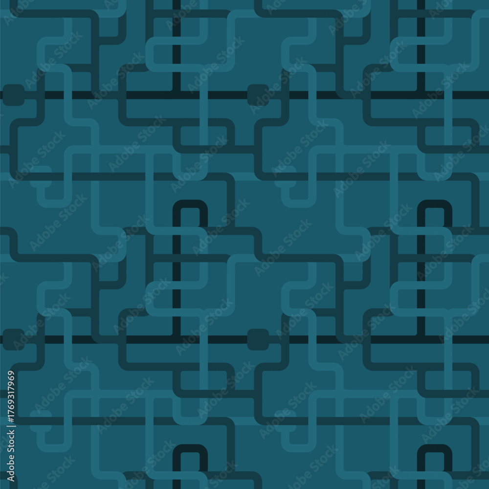 Seamless utility infrastructure pattern - connecting pipes geometric maze design. Water piping background. #1769317969