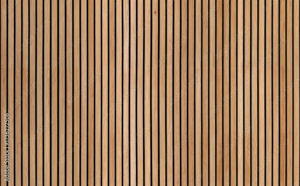 SEAMLESS wall panel pattern, slim vertical slats in light wood with natural fluted texture, modern interior background for home & office, decorative accent wall or acoustic panel design. #1736272508