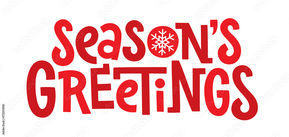 SEASON'S GREETINGS red vector hand lettering banner with snowflake motif #1712076100