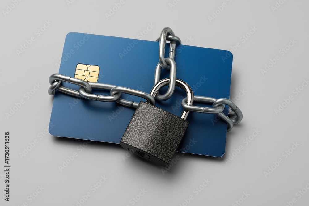 Secure credit card with a padlock and chain for protection against identity theft #1730911638