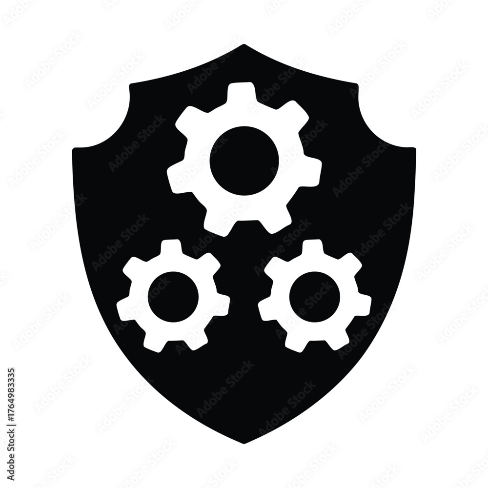 Security shield with gears icon for technology protection and engineering solutions concept design #1764983335