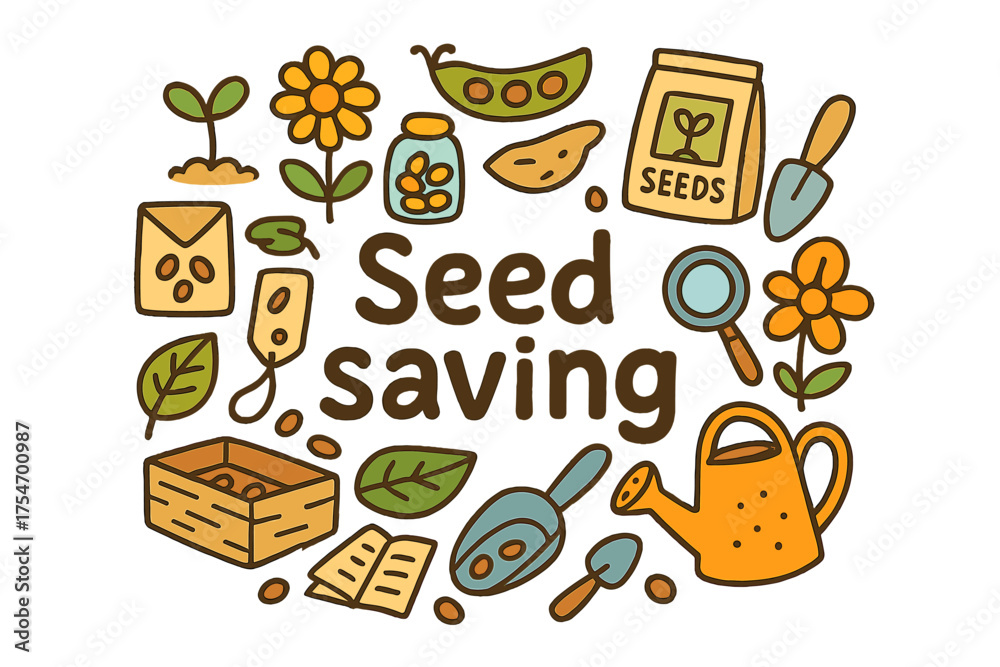 Seed Saving Doodle. Seed saving. Hand-drawn doodle illustration of Seed saving. Plant sprout, flower, seed pod #1754700987