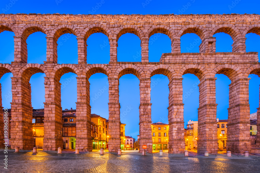 Segovia, Spain. Ancient Roman aqueduct on Plaza del Azoguejo square #1938620865