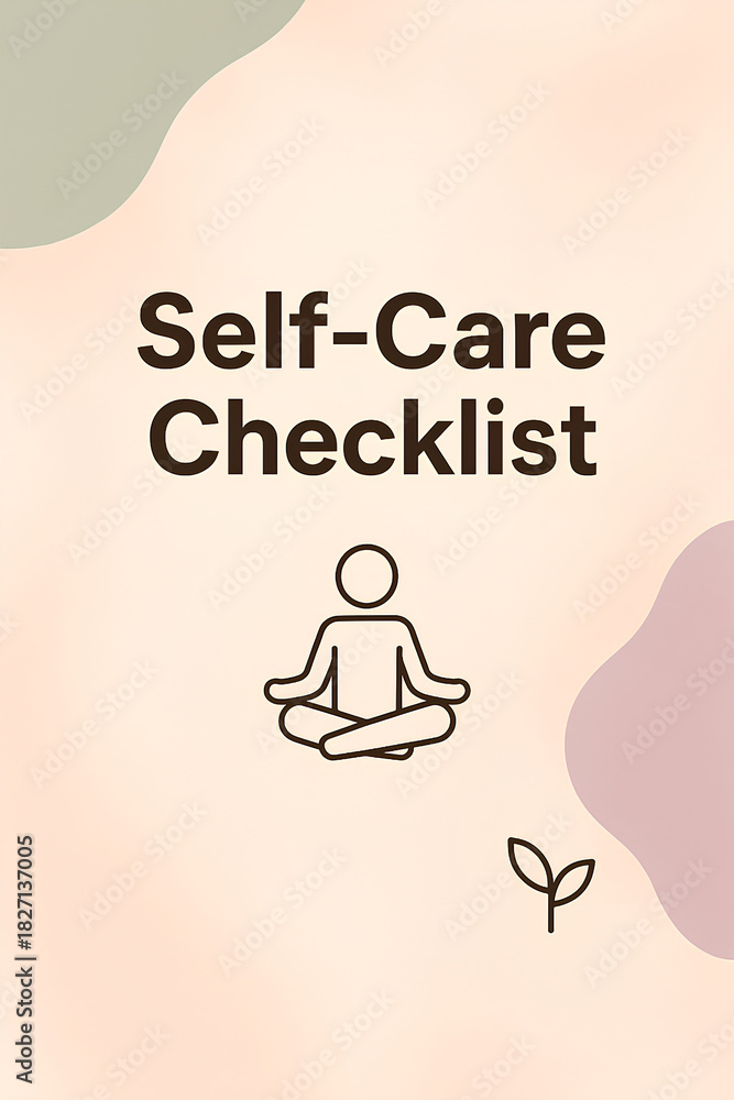 Self-care checklist, vertical planner template for mental health in a minimalist style with organic shapes for stories. #1827137005
