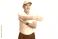 Senior man with earphones stretching his arm #1907222144